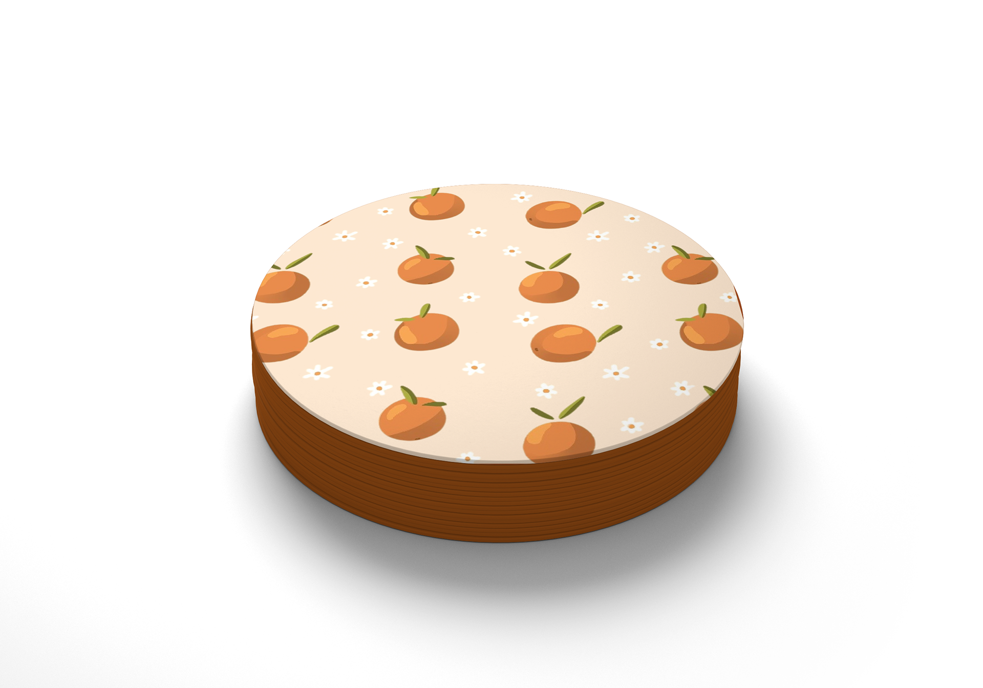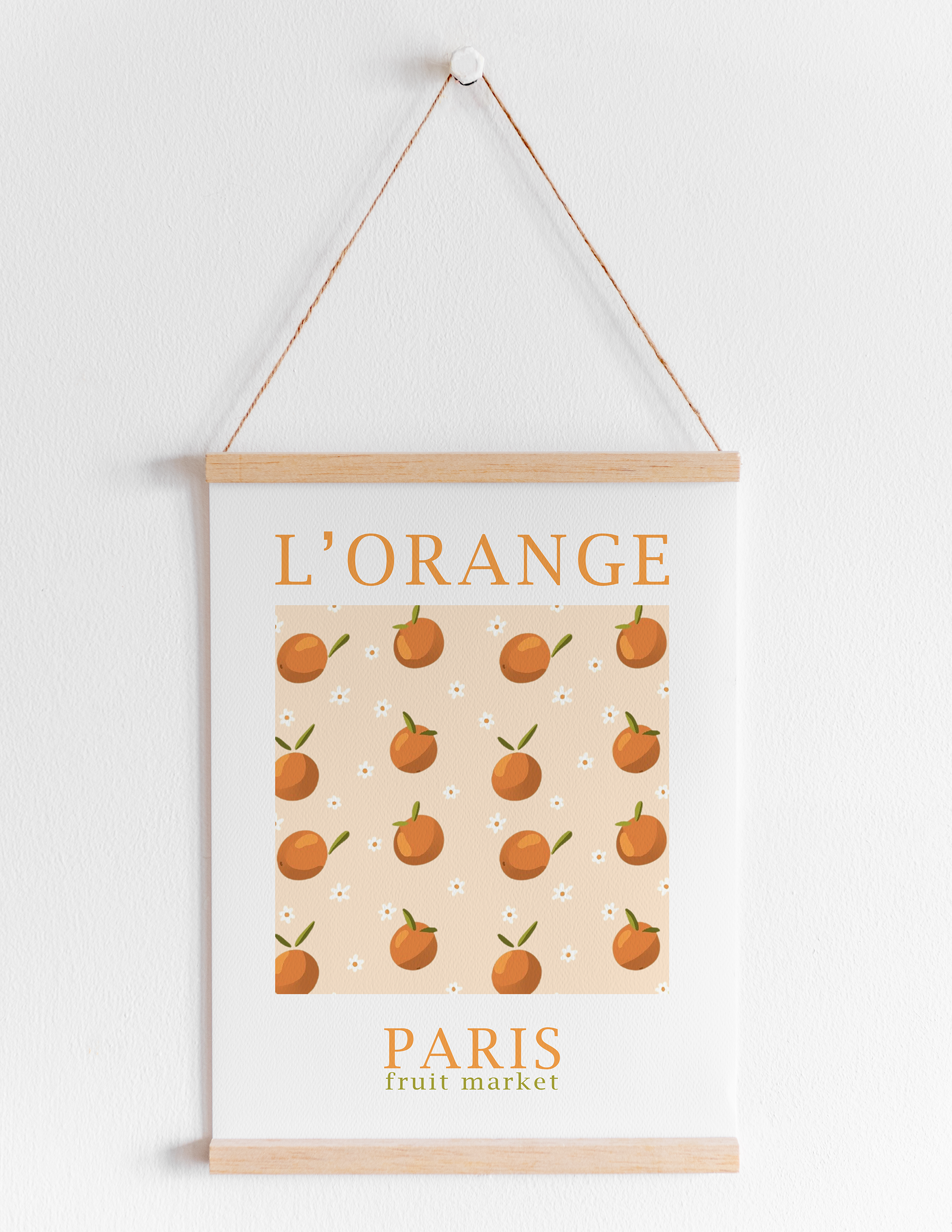 During my first visit to France, I observed and photographed a beautiful fruit market. Upon reviewing the photograph, the idea arose to develop a pattern focused on oranges. During the creative process, mockups were tested to see how the pattern would look on different products. Thus, the fictitious collection lovingly named L'orange was born.